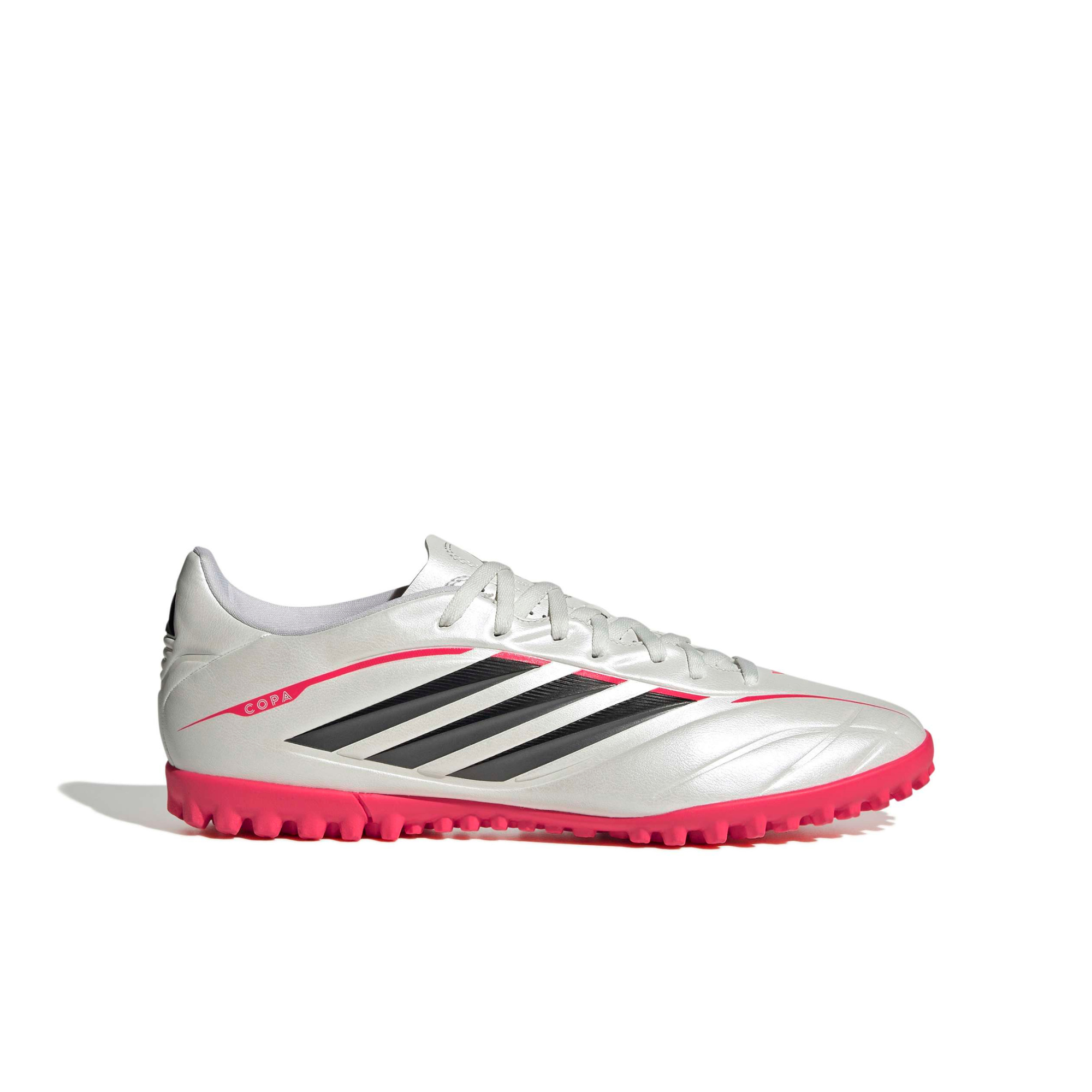COPA Pure IV Club Turf Football Shoes are crafted for those who value precision and comfort on the pitch. With a synthetic upper, these shoes offer durability and flexibility, adapting to the shape of your foot for a personalised fit. The 3D haptic prints enhance ball grip, giving you better control for better play. Designed for turf pitches, the rubber outsole provides traction on short-bladed synthetic fibres, allowing you to make quick, confident movements. The laced floating tongue provides easy step-in and adjustability, offering a secure fit, and the tongueâ€'s perforations provide ventilation for a more comfortable feel. With a nod to the iconic adiPure pinline, these shoes boast a bold COPA franchise placement, making a statement on and off the pitch. Embrace the heritage and innovation of adidas with these turf shoes, where performance meets style.