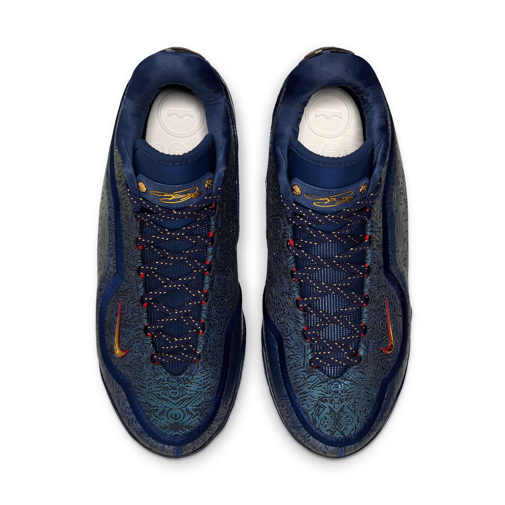 When the United States called on LeBron to exact global vengeance on the game’s biggest stage in 2008, he answered. This LeBron XXIII celebrates King James and his country. We took the same graphic pattern that covered Team USA’s on-court shoes and applied it across the upper. We wrapped it around the shoe as well, in a tone-on-tone navy material. Check out the gold fleck speckles throughout the laces and the outsole, an ode to the group that helped bring glory back stateside and restored world order in the process.