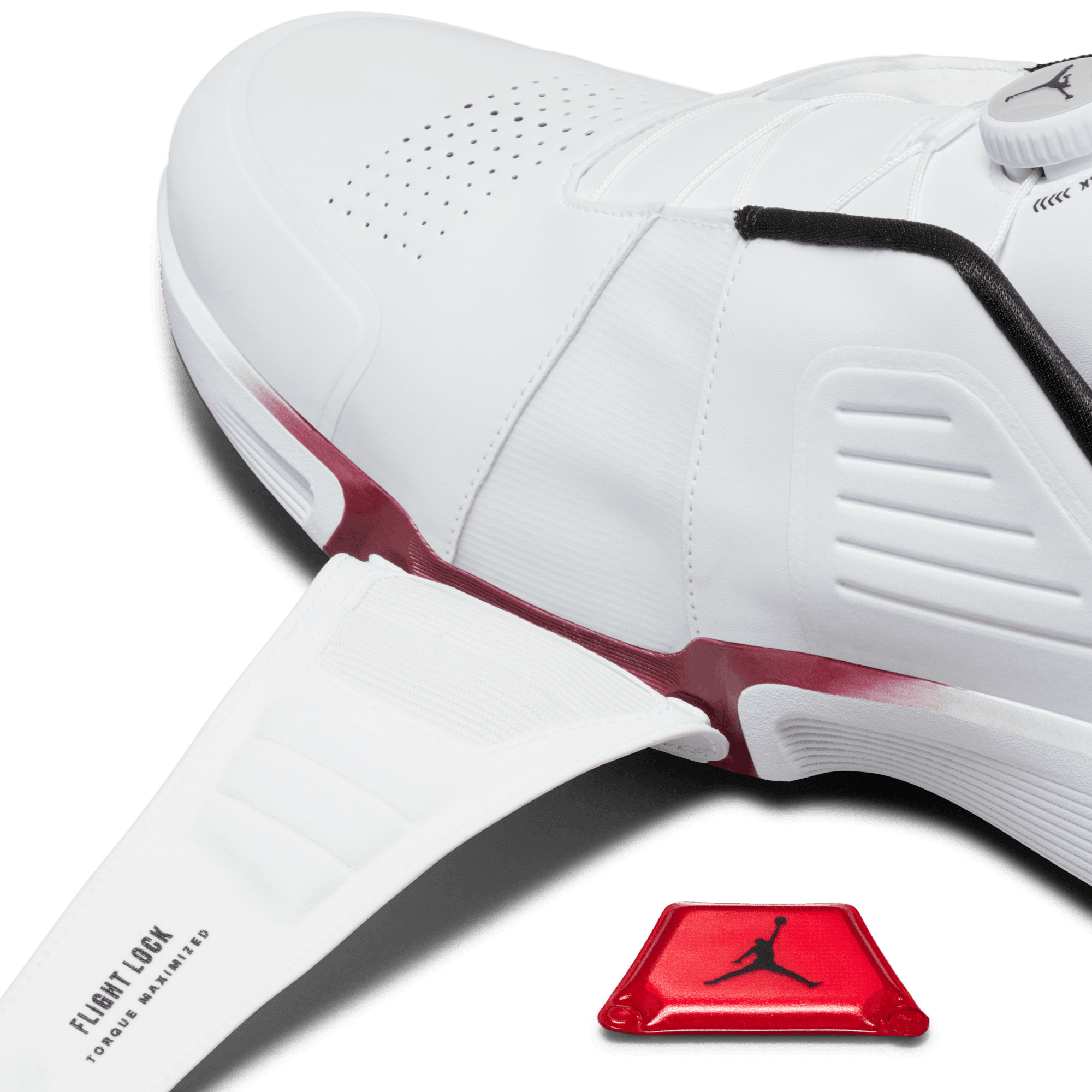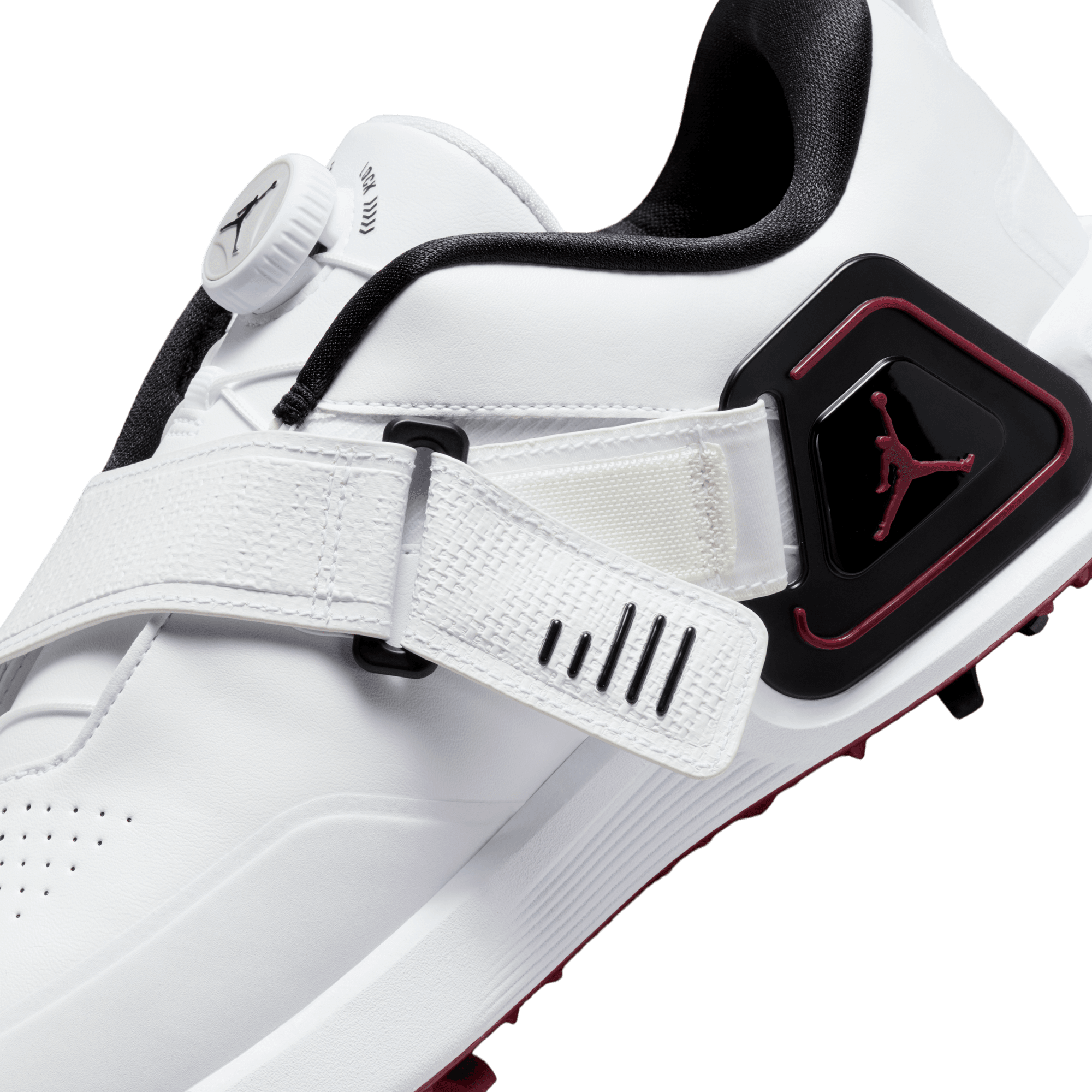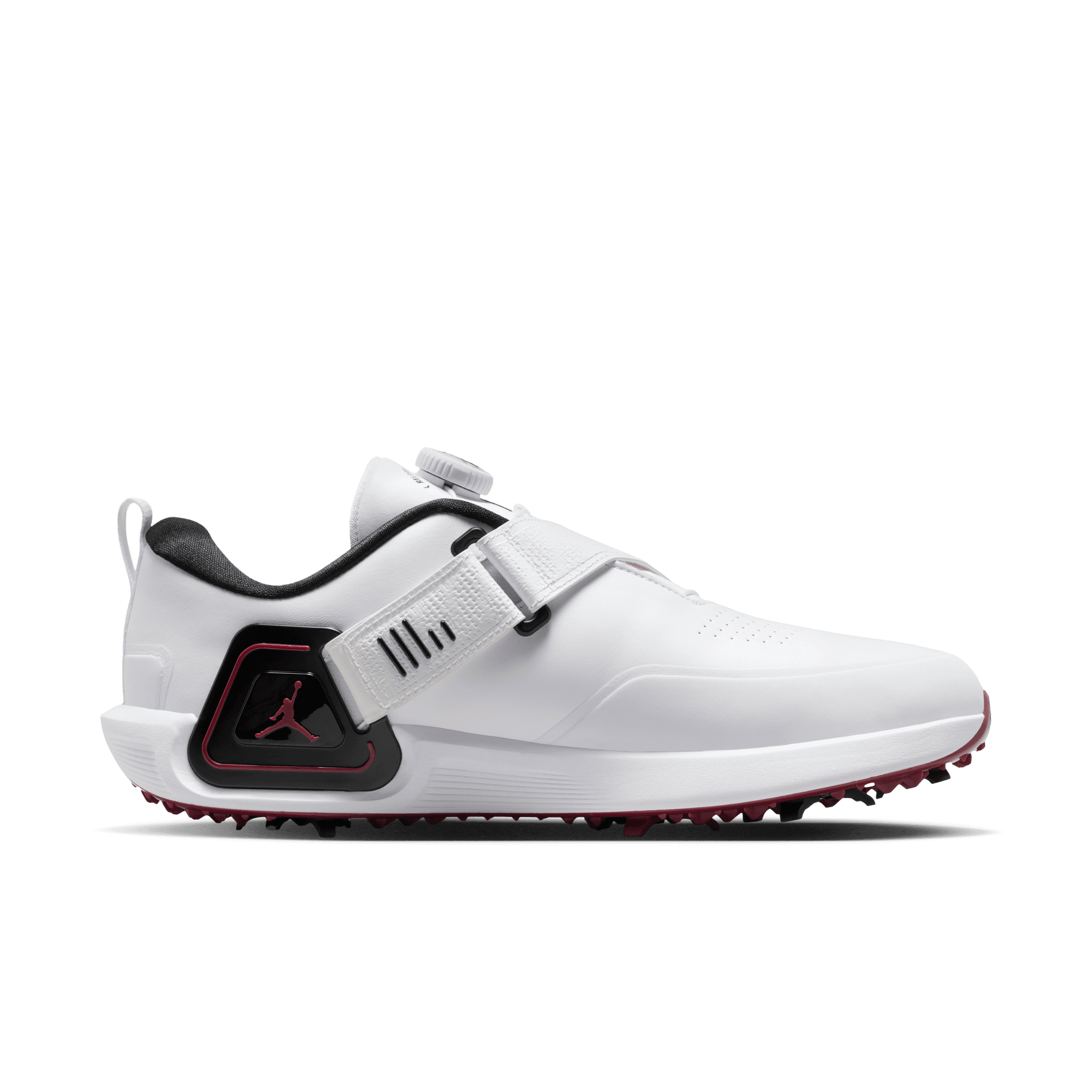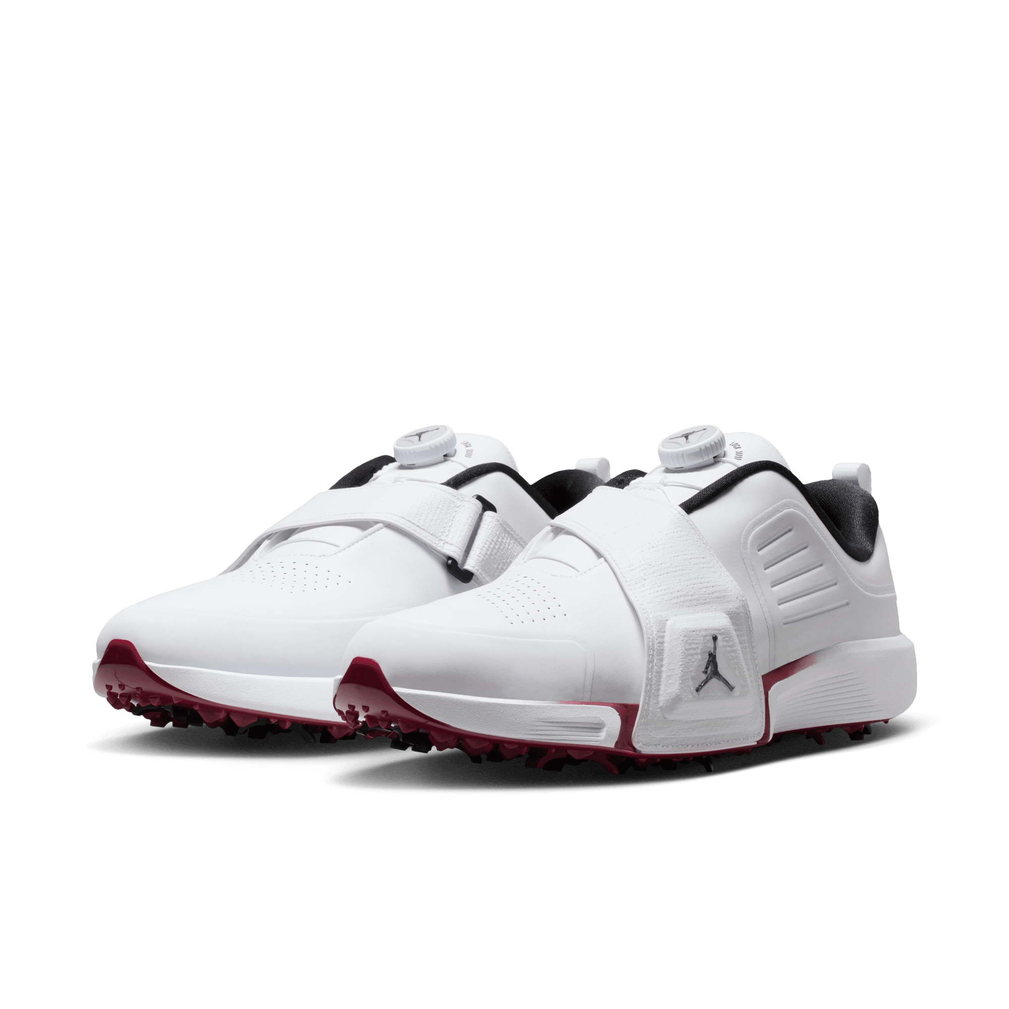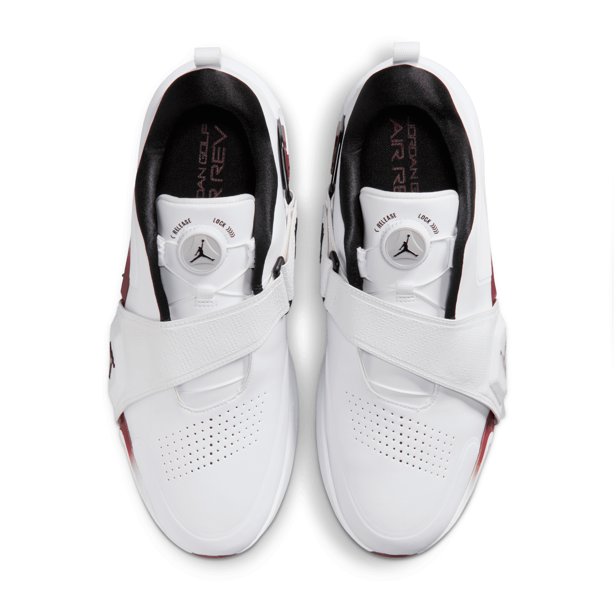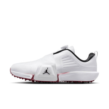 What makes the Rev so revolutionary? It's the first Jordan golf shoe with a moveable Air Zoom unit. Right-handed players will want to tuck the Air Zoom unit inside the Flight Lock strap of the right shoe. The strap acts as an anchor point for the Air Zoom unit, which provides snappy cushioning for you to push against as you power through your swing. A springy foam pod in the left shoe helps soften your landing. Switch the Air Zoom unit and foam pod if you play left-handed.