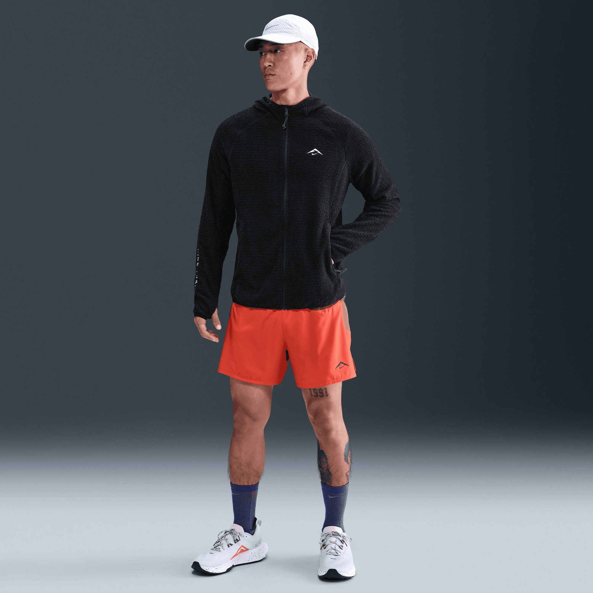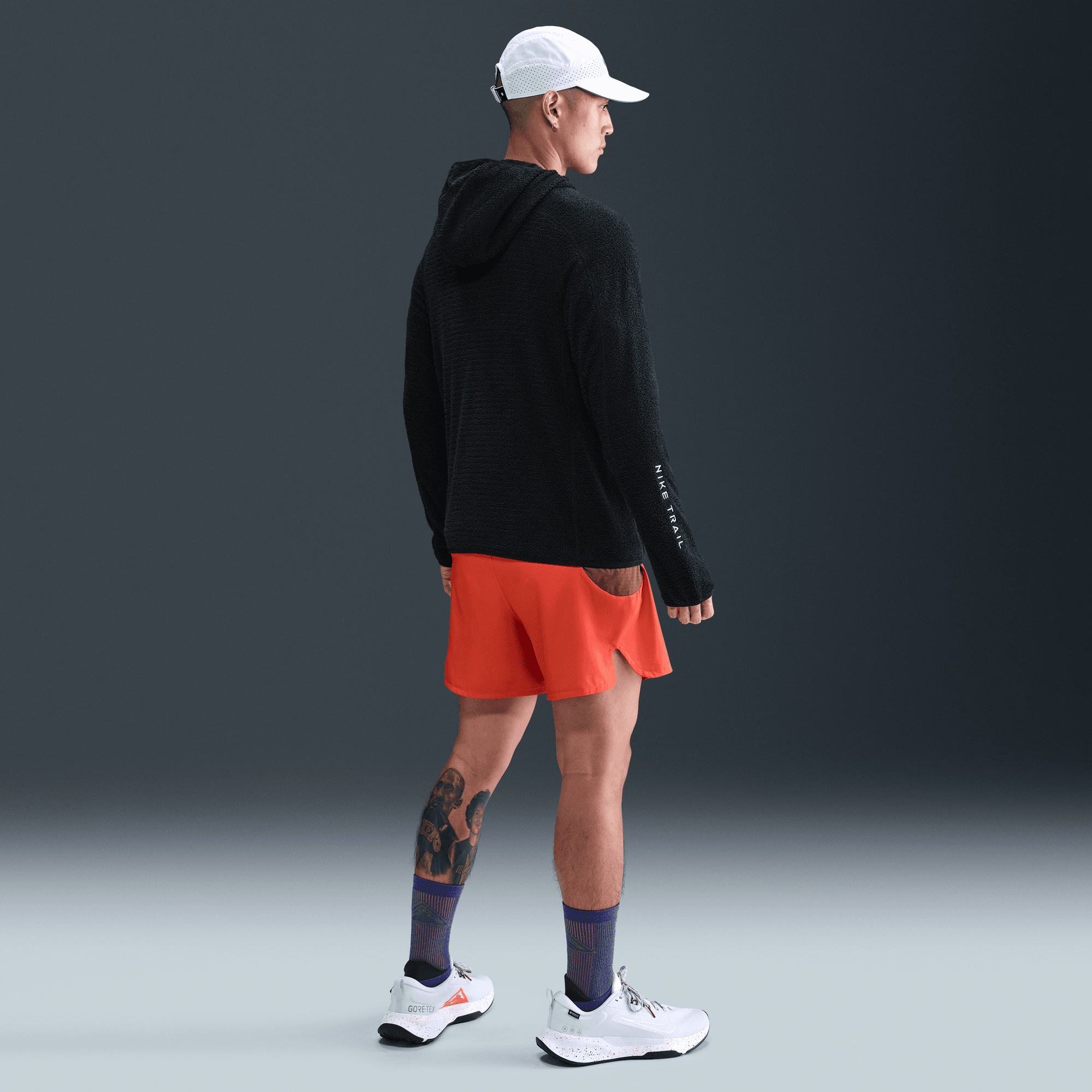 - Embroidered Nike Trail logos on chest and sleeve