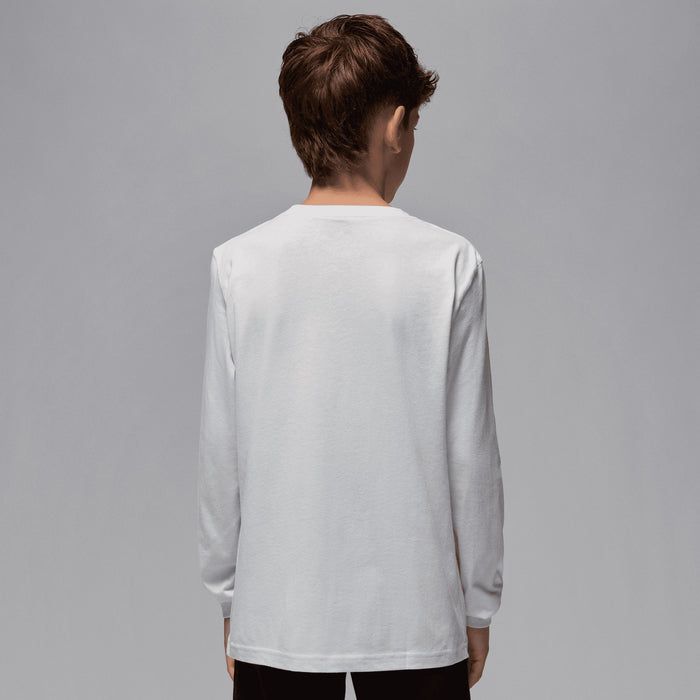 Flaunt that Jumpman drip figuratively and literally, in this tee, which can be layered under a short sleeve tee or worn alone. It's made of smooth blended cotton jersey in a cozy long-sleeve silhouette with a tagless crewneck for a comfy fit. What's more, it can pair with any Jordan bottom for a coordinated fit that complements your kicks.