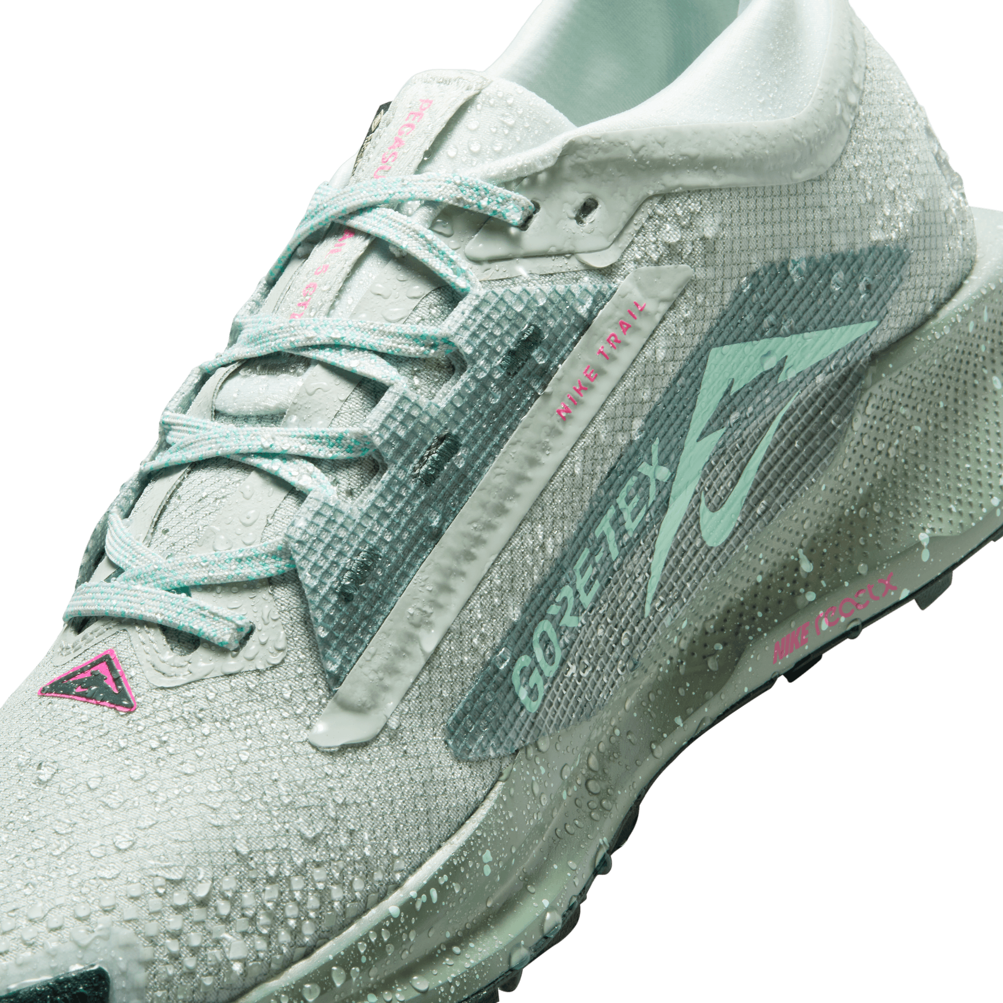 The Pegasus Trail 5 provides wet-weather protection for trail running. A waterproof GORE-TEX upper, an all-terrain outsole and reflective details help you comfortably take on the elements. With a ReactX foam midsole, it gives you responsive cushioning for an energized ride.