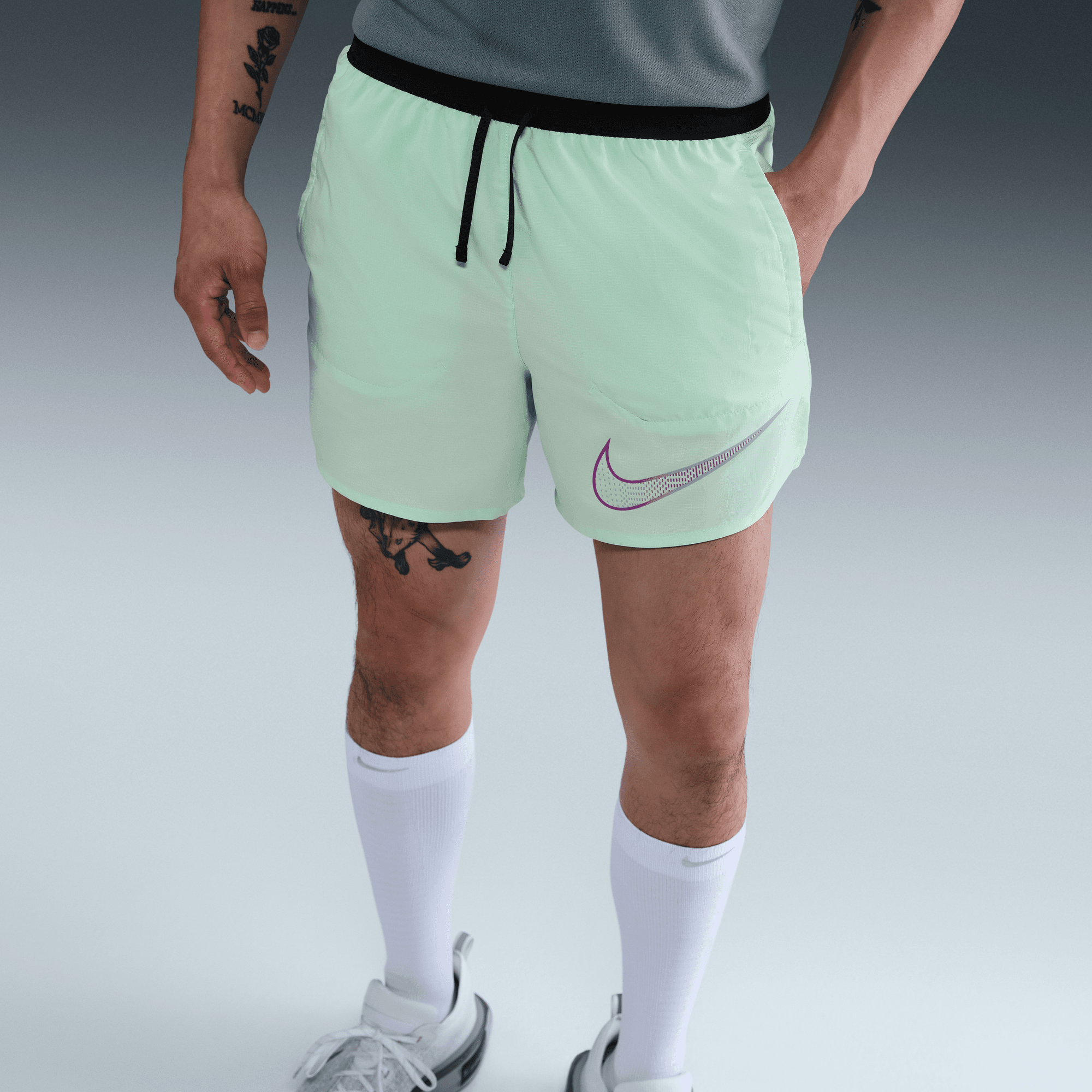 These Stride shorts are built to go the distance with lightweight, sweat-wicking woven fabric and a supportive brief. The secure back pocket fits most phones.