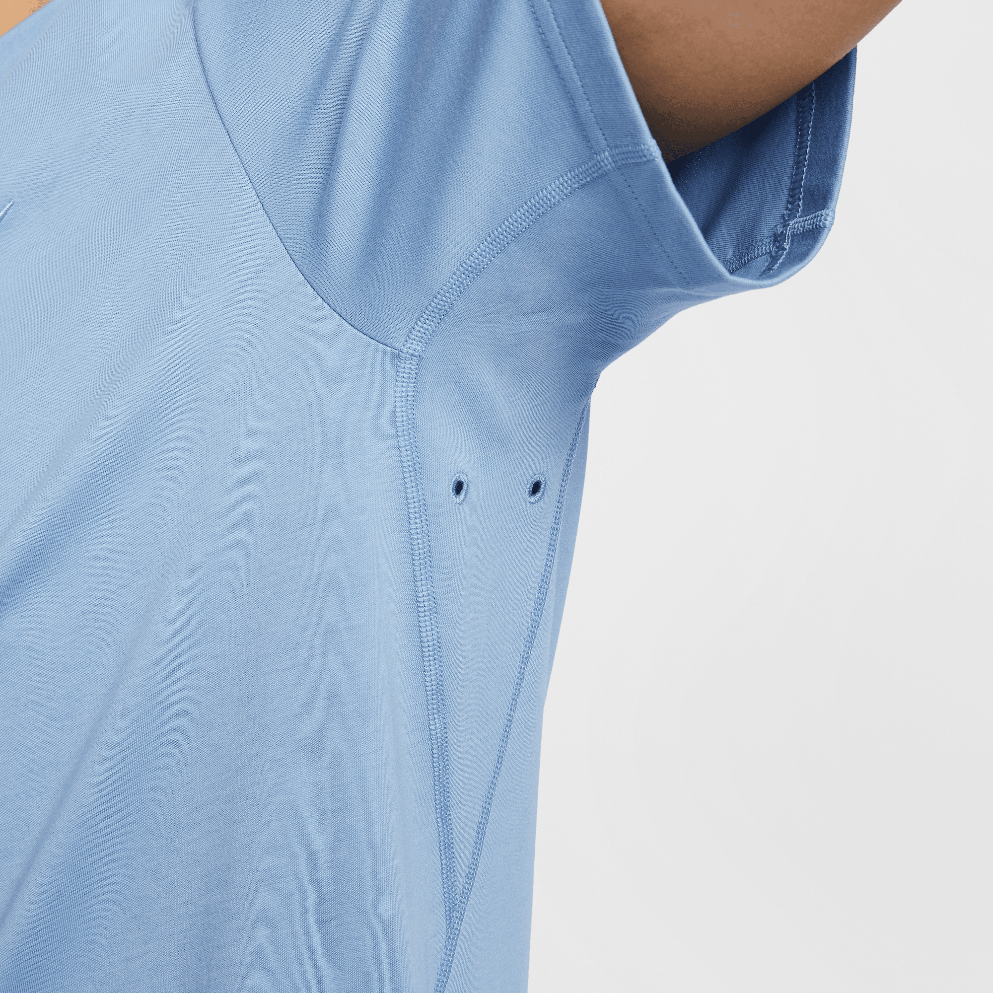 Embroidered underarm eyelets help increase ventilation to keep you cool.