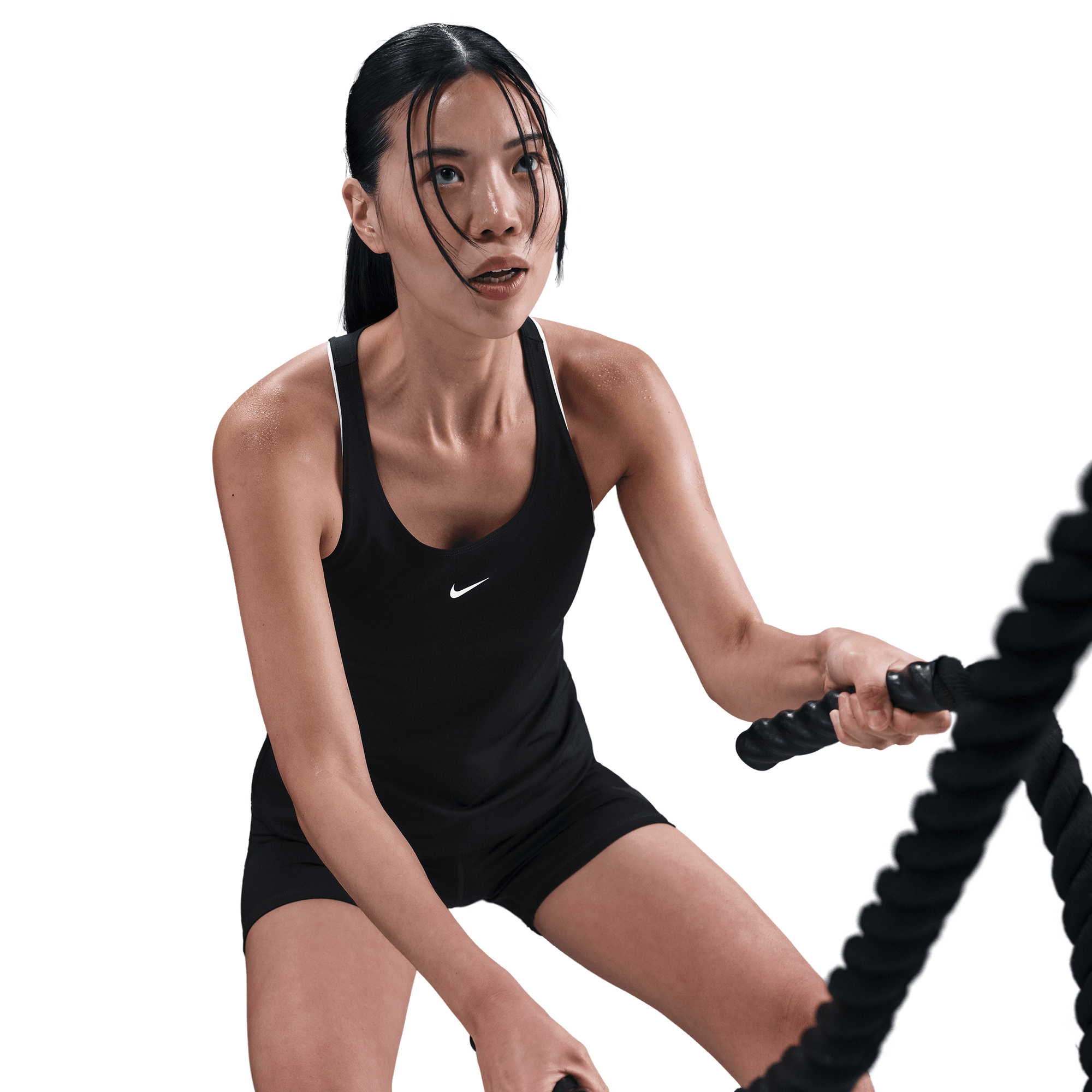 Ready to sweat? This tank's ultralightweight, silky-smooth fabric dries quickly to help you stay cool when your workout heats up.? An open back allows moisture to escape.