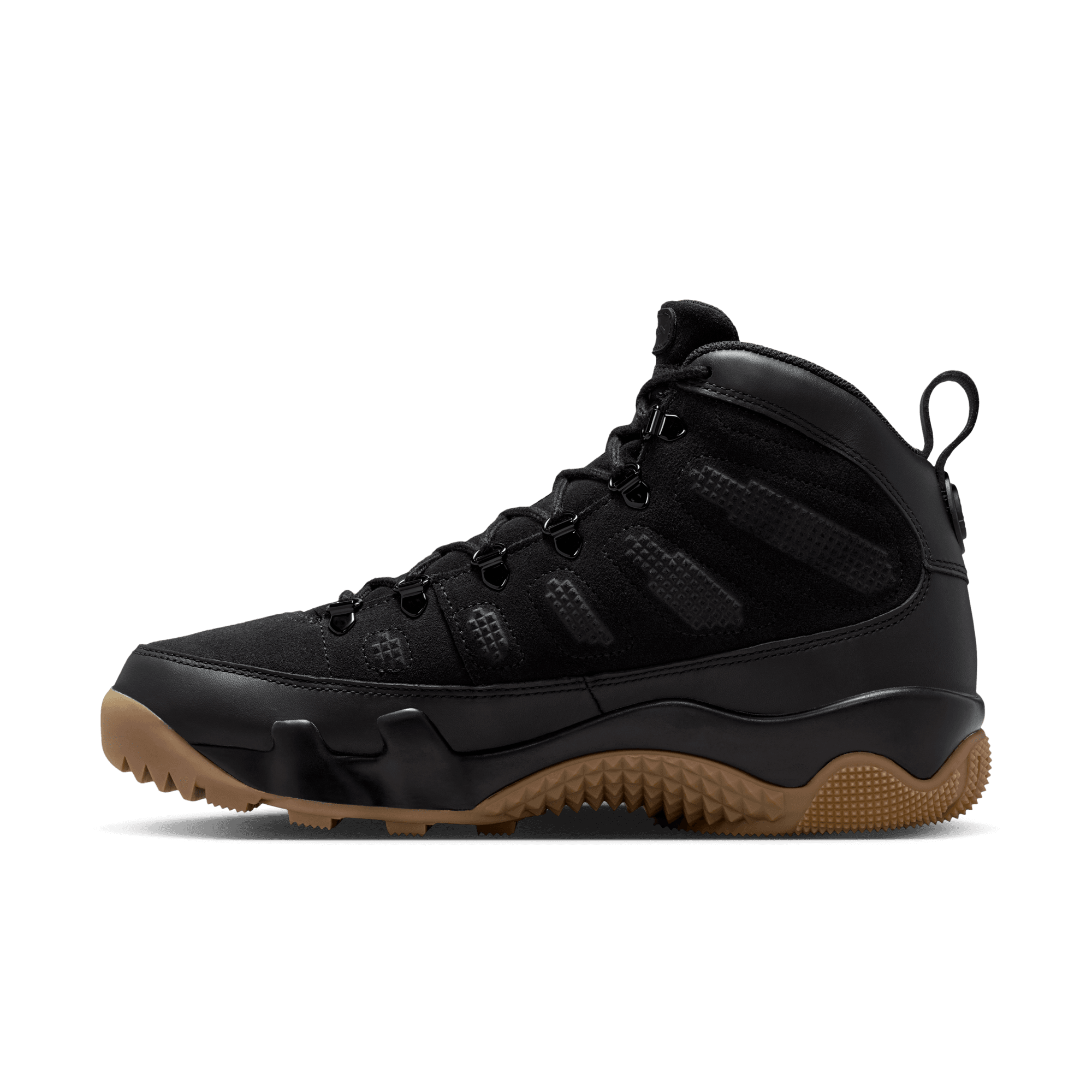 The Air Jordan 9 Retro Boot combines elements from the Special Field Boot and MJ's iconic ninth signature game shoe, originally designed by Tinker Hatfield and released in 1993. The rugged design is built to handle rough weather without breaking from its classic style. It's outfitted with durable leather in the upper, a gusseted tongue, metal eyelets and heavy tread. Air Zoom cushioning in the heel and forefoot add a bouncy buffer between your feet and the ground beneath you.